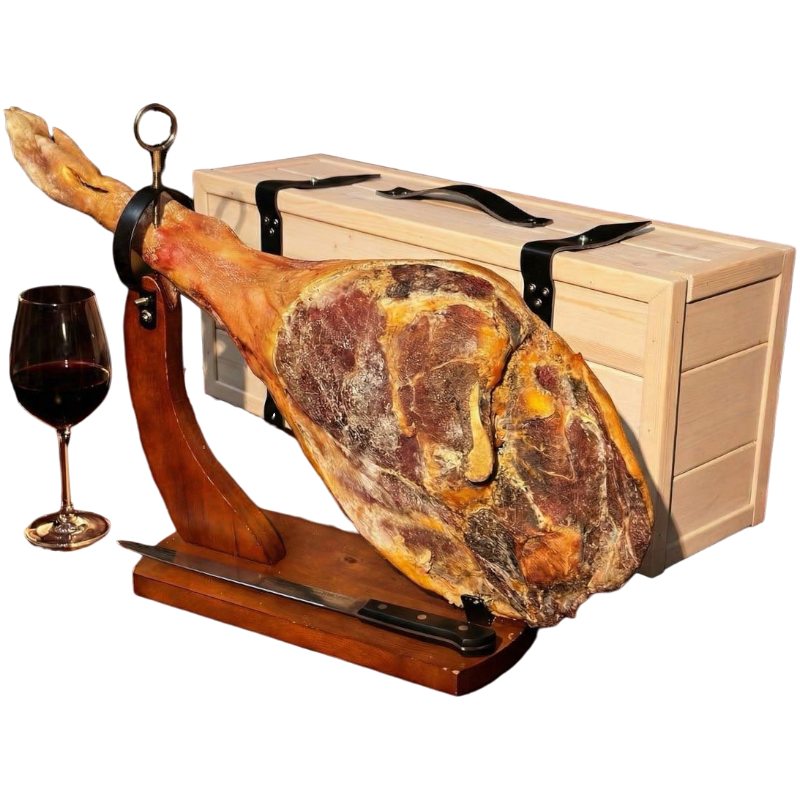 Хамон Серрано (нога целиком, вес 7,8 - 8,2 кг.), хаоньера, нож, сундук